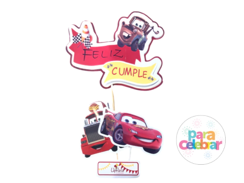 Cake Topper Feliz Cumple 3D Auto Rojo $3.685